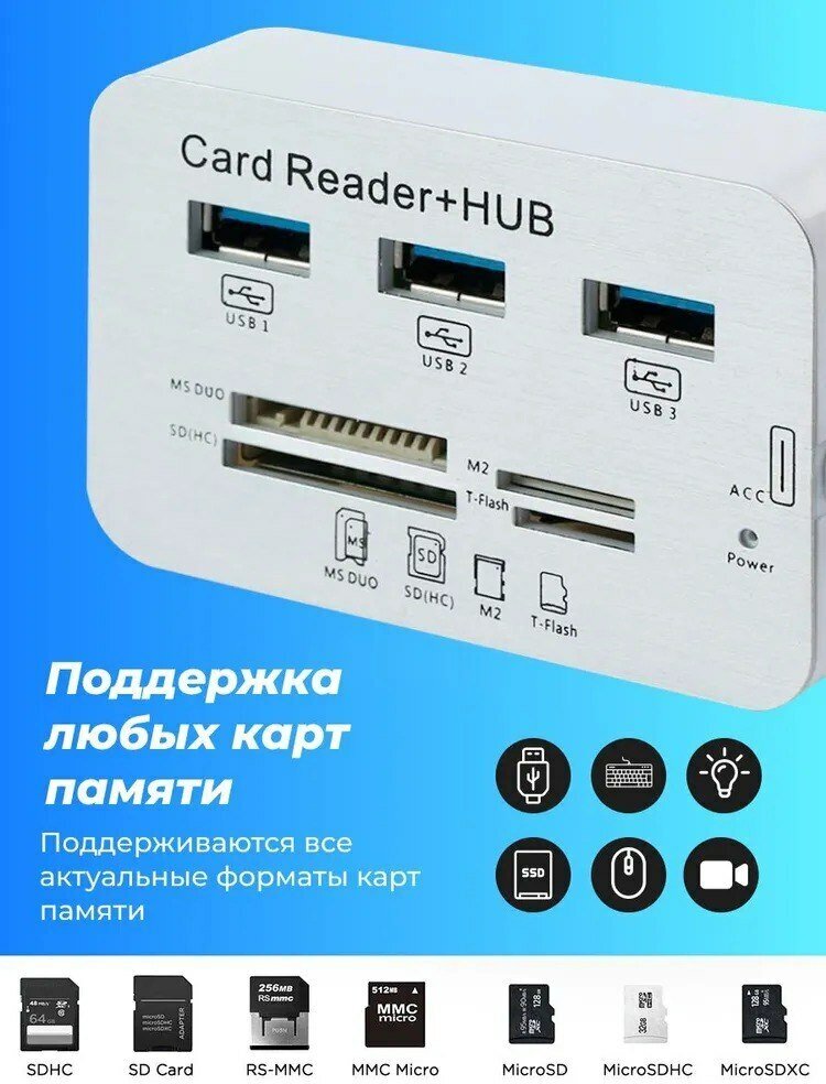 Картридеры и USB-хабы USB хаб-картридер HUB 2010H3 USB 3.0/3.1, 3xUSB, MS DUO, SD (HC), M2, T-Flash