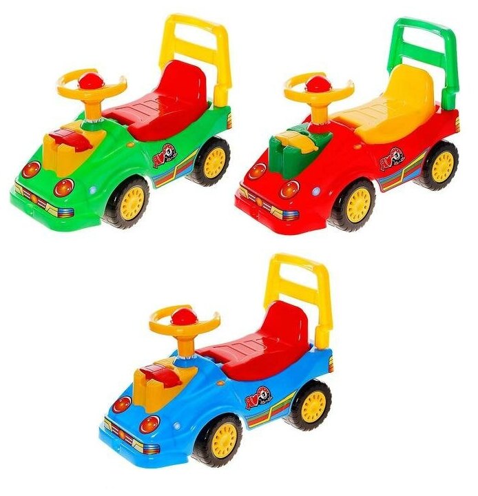 Лучшие цены. Незаменимая игрушка для ловких автомобилистов. Яркие цвета и интересные наклейки непременно привлекут внимание родителей и понравятся малышам. Автомобиль надежный, прочный, практичный и удобный. Для быстрой связи с друзьями - на корпусе размещен мобильный телефон. Эргономичный дизайн рассчитан для малышей уже с 1-го года. Спинка предоставляет дополнительную поддержку детям во время езды. На машинке поворотный руль для маневрирования, а сигнальная кнопка для оповещения пешеходов и других автомобилистов. Магазины в вашем городе.