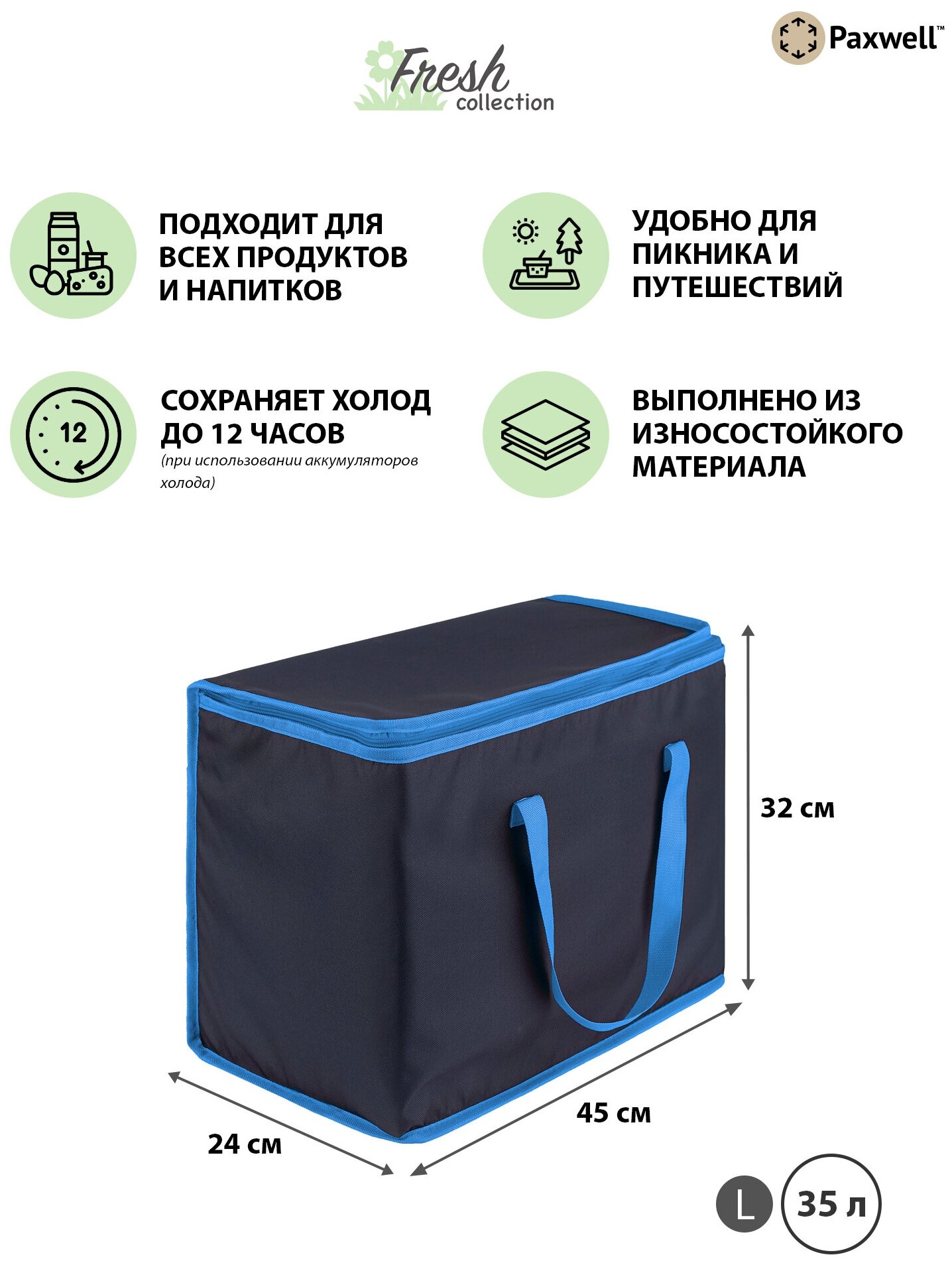 Термосумки Термосумка-холодильник с ручками Paxwell Фреш 1L (35л), синий/голубой