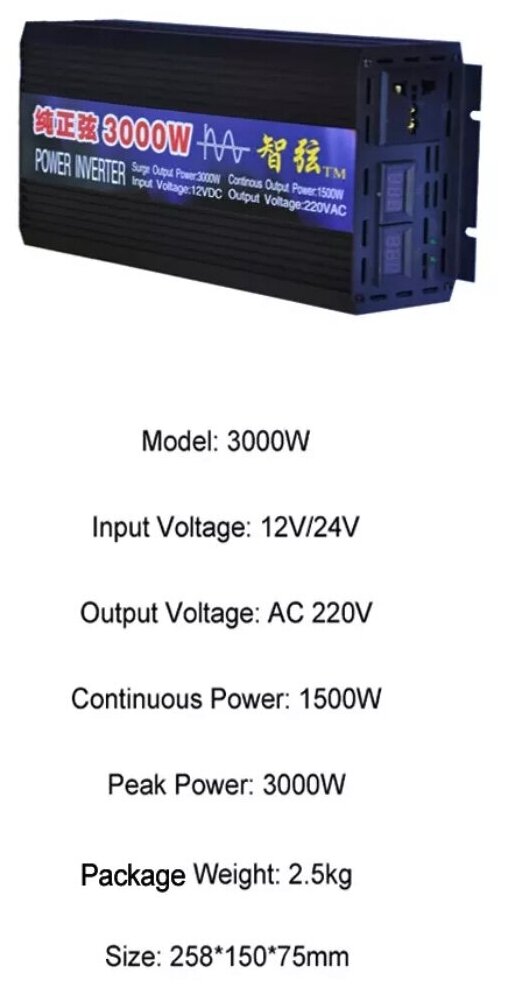 Инверторы Автомобильный преобразователь напряжения инвертор 3000 Вт 12В-220B Чистая, немодифицированная синусоида