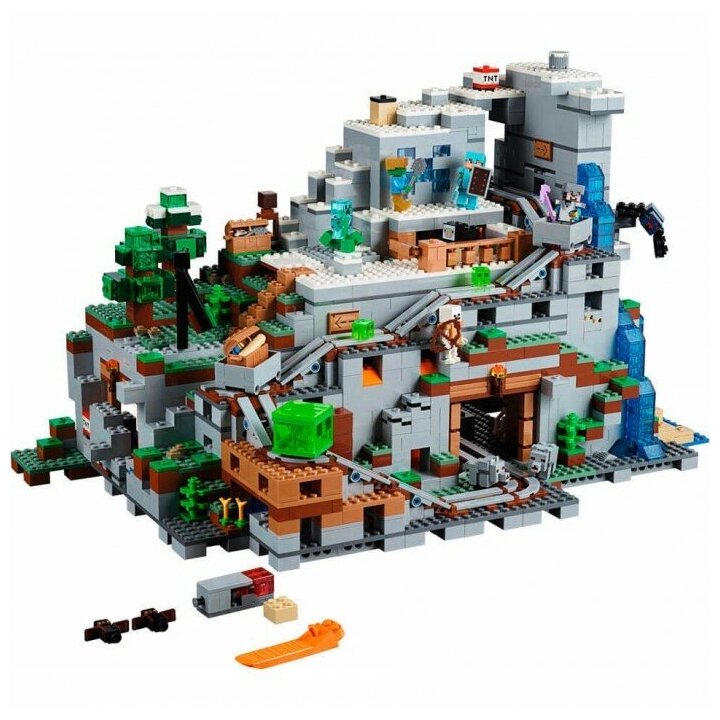 Лучшие цены. Конструктор Minecraft Пещера Горная 10735 2886 дет. Майнкрафт Горная пещера – масштабная модель, объединяющая в себе несколько локаций. Представленная игровым набором, включающим в свой состав 2886 деталей, она позволяет менять местами элементы конструкции и каждый раз создавать свой собственный фантазийный мир. Конструктор Minecraft Пещера в горах – это строение, условно поделенное на несколько самостоятельных локаций. Первое, что бросается в глаза – скалистые горы. Магазины в вашем городе.