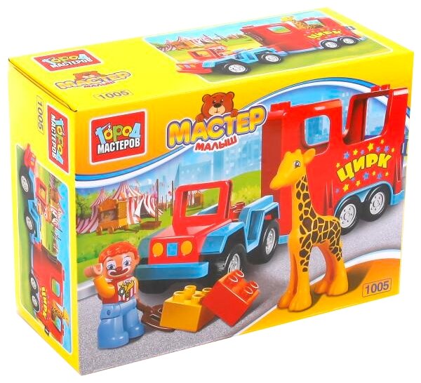 Лучшие цены. Конструктор "город мастеров" большие кубики: машинка С жирафом, С фигуркой. Конструктор "Большие кубики: машина с жирафом" совмещает в себе две функции: ребёнок строит цирковой грузовик и играет с ним, моделируя разные сюжеты. В наборе представлено 10 деталей ярких цветов, окрашенных стойкими к истиранию безопасными красителями и оснащённых удобными блочными креплениями. В набор входят фигурки жирафа и клоуна, которые делают игру интереснее и реалистичнее. Магазины в вашем городе.
