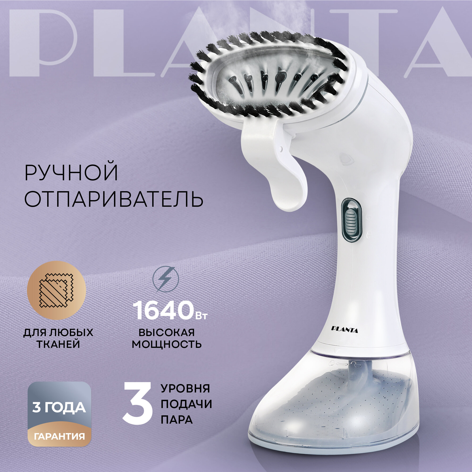 Отпариватели одежды PLANTA Ручной отпариватель PLS-H01 для всех видов тканей, съемный резервуар для воды, сумочка для хранения и ворсовая щеточка в комплекте