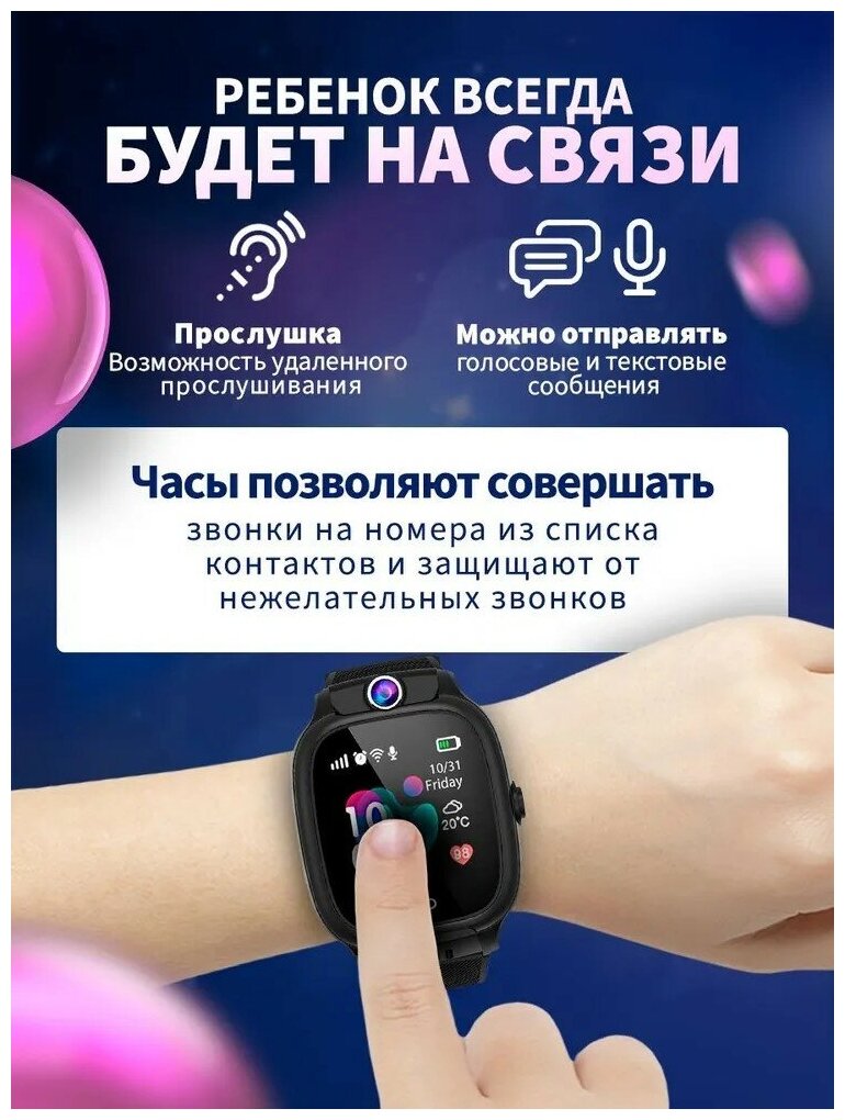 Лучшие цены. Детские смарт часы черного цвета - важный девайс для каждого школьника, благодаря которому вы всегда будете спокойны. Это новая модель умных часов с более точной геолокации, аккумулятором большей ёмкости и поддержкой Wifi версии V1.0. Вы всегда сможете определить местоположение вашего ребенка. В любой момент ребёнок может воспользоваться кнопкой SOS, после чего вам поступит экстренный звонок. Устройство позволяет быть на связи с ребенком в любое время, не используя телефон. Магазины в вашем городе.
