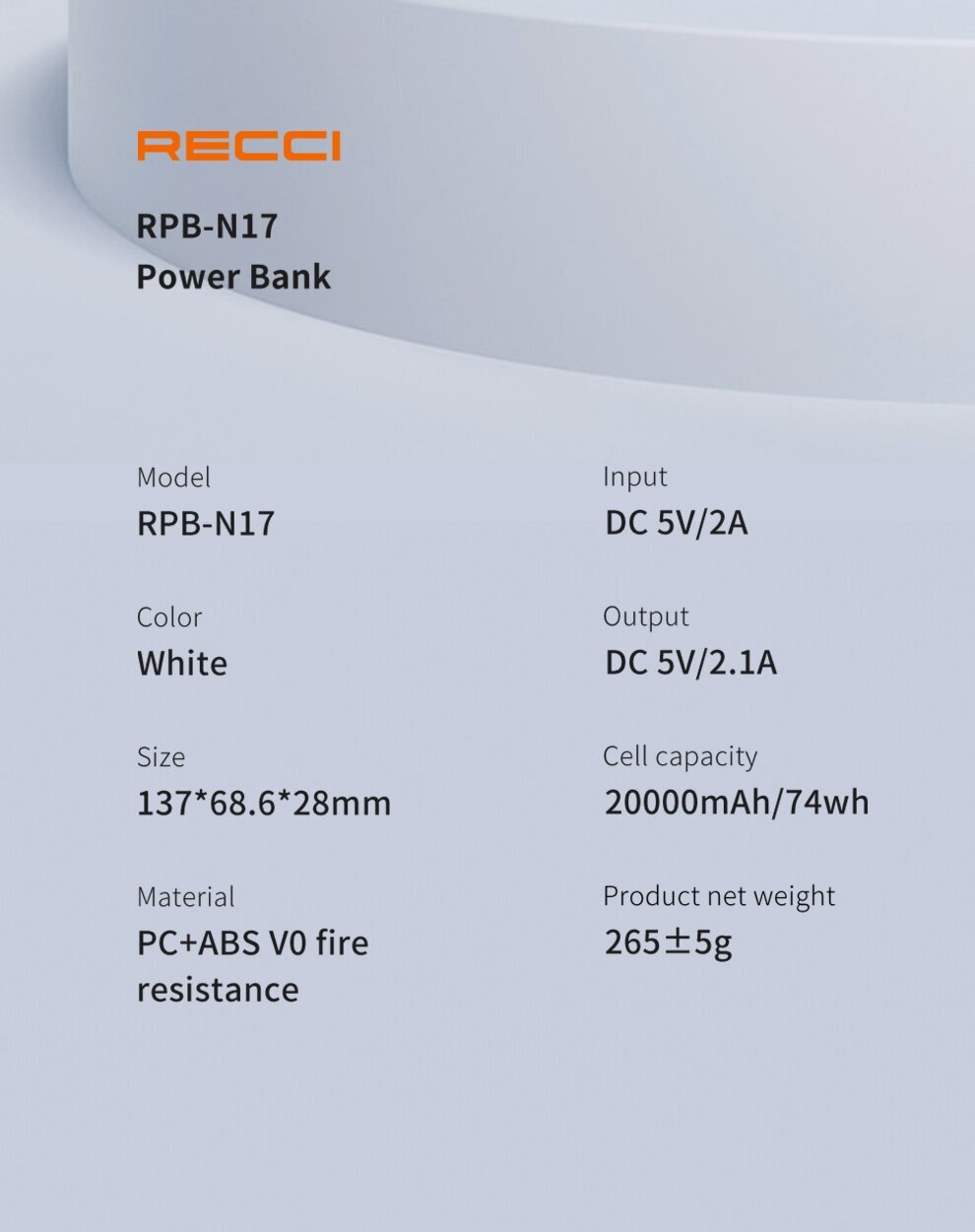 Powerbank Внешний аккумулятор (powerbank) Recci RPB-N17 Power Burton 20000мАч, 2 x USB, 2.1A, черный