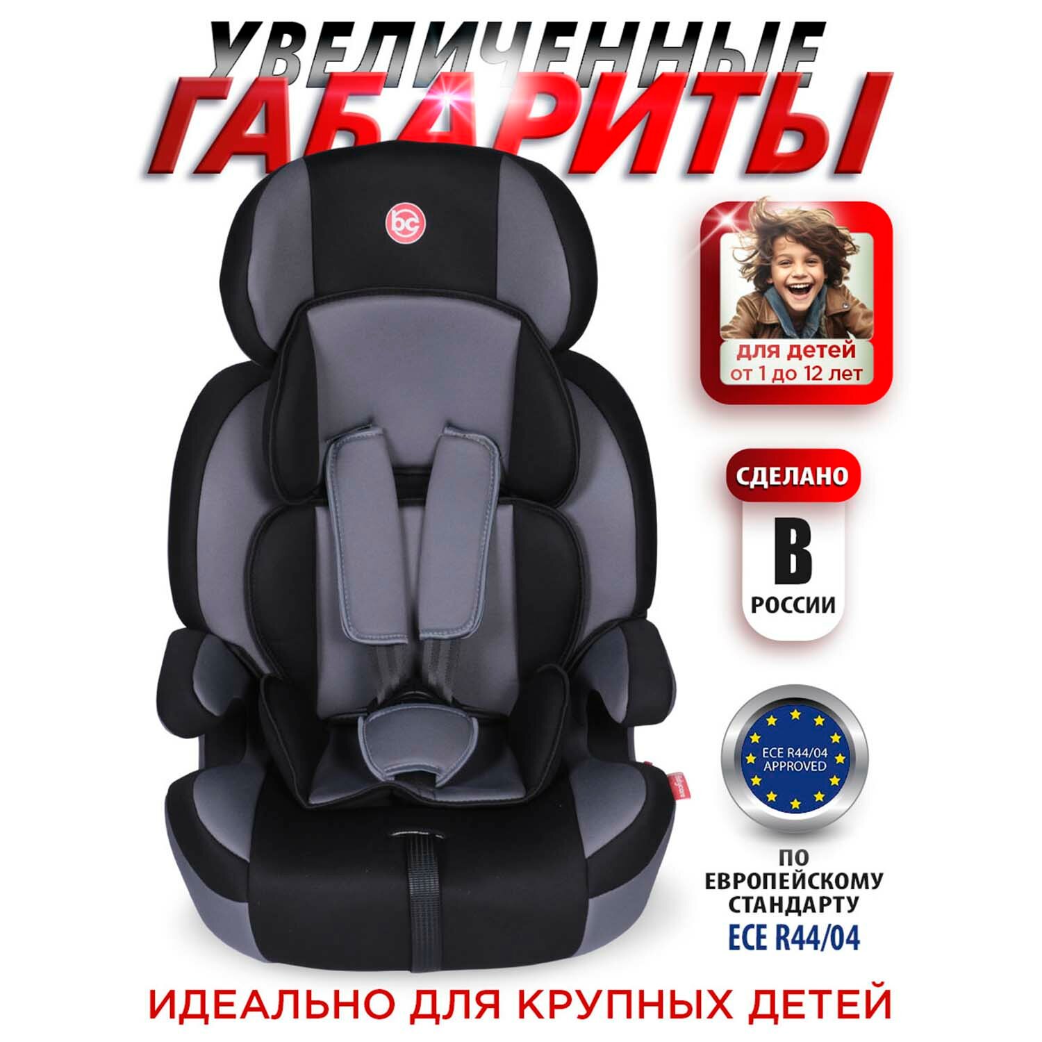 Детское автокресло Baby Care Детское автомобильное кресло Legion гр I/II/III, 9-36кг, (1-12лет),черный/серый