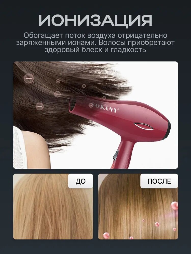 Универсальный фен для всех типов волос/HEALTHY AND STRONG/SK-2215/концентратор/диффузор/2600 Вт/удобная ручка/красный