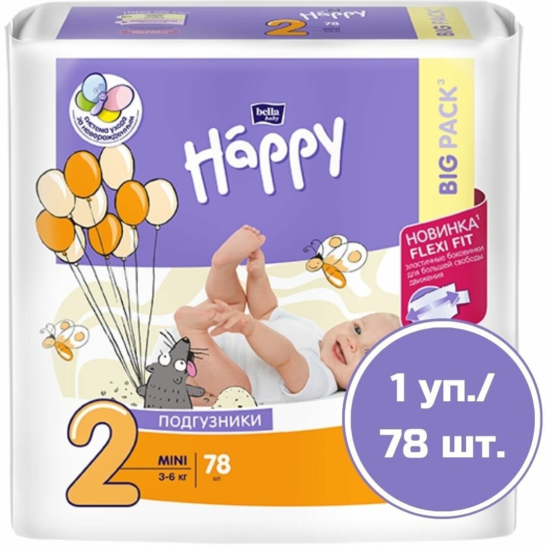 Подгузники детские bella baby Happy Mini для новорожденных, размер 2 (вес 3-6 кг), 78 шт.