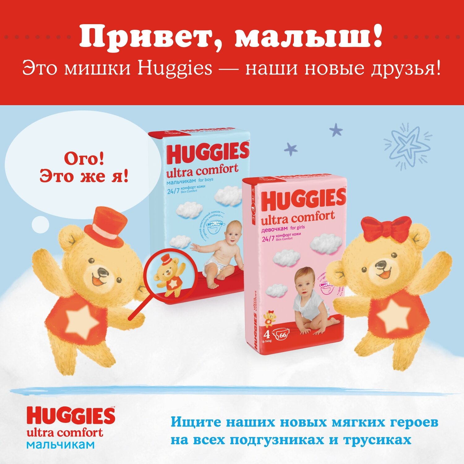 Лучшие цены. "Подгузники Huggies Ultra Comfort с тремя впитывающими каналами созданы специально для мальчиков! Впитывающий слой на подгузниках Ultra Comfort расположен с учетом анатомических особенностей мальчиков, что позволяет максимально быстро впитывать влагу и распределять ее внутри подгузника, оставляя кожу сухой 24/7. Широкий мягкий эластичный поясок подгузников Хаггис Ультра Комфорт позволяет зафиксировать подгузник на животике, сохранив максимум комфорта и свободы движения и не врезаясь в кожу малыша. Магазины в вашем городе.