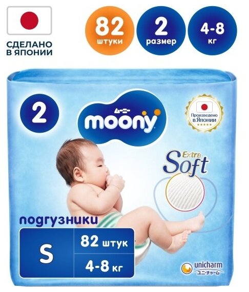 Подгузники Подгузники детские Moony AirSilky 2 S 4-8 кг, 82 шт