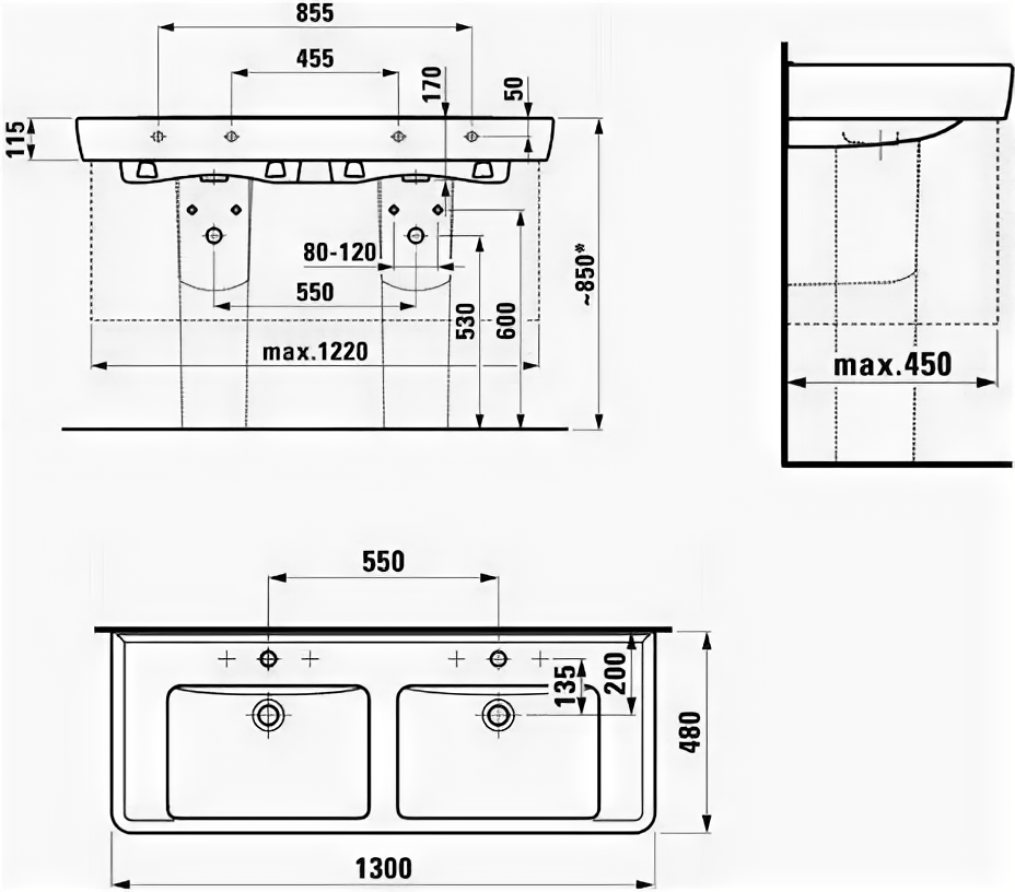LAUFEN PRO S Раковина двойная 1300x480х115 мм , с 1 отв под смесит, цвет белый глянцевый (Со склада продаем с базой 4.8308.2.095.485.R) 102 900 ₽ Подробнее