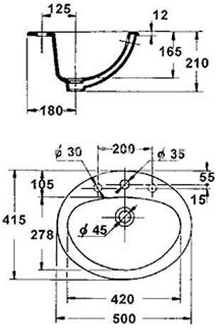 Умывальник Раковина Jacob Delafon Ovale E1358-00, врезная сверху, 50 х 41,5 см