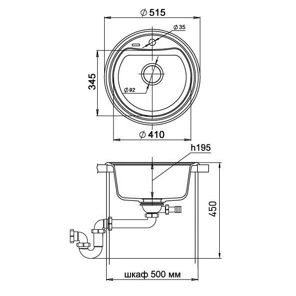 Мойка кухонная EWIGSTEIN Antik R50 1-чаша D-520мм черный