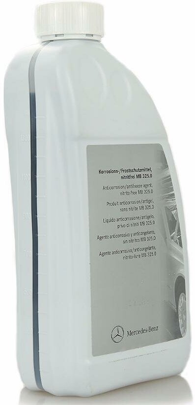 Лучшие цены. Антифриз Mercedes-Benz предназначен для применения в охлаждающих системах двигателей Mercedes-Benz. Партометр (артикул) : A000989082510. Допуски OEMMB 325.0. Цвет Синий. Класс G11. оздан на основе моноэтиленгликоля и специально подобранного пакета присадок, без ингибиторов, содержащих нитриты, амины и фосфаты. Обеспечивает отличную защиту от коррозии и, так как он не содержит фосфатов, устраняет проблему отложений, встречающуюся в некоторых современных двигателях. Магазины в вашем городе.