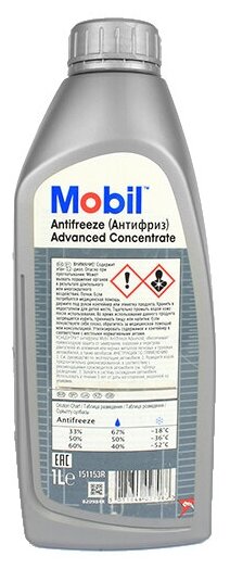 Лучшие цены. Концентрат Mobil™ Antifreeze Advanced 151153 представляет собой концентрированный антифриз с очень высокими эксплуатационными характеристиками, который необходимо разбавлять перед использованием. Применение Mobil Antifreeze Advanced соответствует требованиям стандарта BS6580:2010, что делает его пригодным для различных автомобилей, в том числе Volkswagen TL 774-D/F (VW Code G12+); Audi TL 774-D/F; Bentley TL 774-D/F; Bugatti TL 774-D/F; Lamborghini TL 774-D/F; Skoda TL 774-D/F; Seat TL 774-D/F ; Porsche. Магазины в вашем городе.