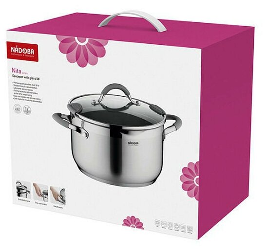 Лучшие цены. Кастрюли серии Nita изготовлены из высококачественной нержавеющей стали 18/10. Прочное трёхслойное капсульное дно изделий служит для равномерного распределения тепла по всей площади посуды. Встроенный в крышку дуршлаг, носики на корпусе посуды, теплозащитные силиконовые держатели на крышке делают процесс слива воды максимально простым и удобным. Широкие и прочные ненагревающиеся ручки с силиконовым покрытием существенно облегчают работу с нагретой посудой. Магазины в вашем городе.