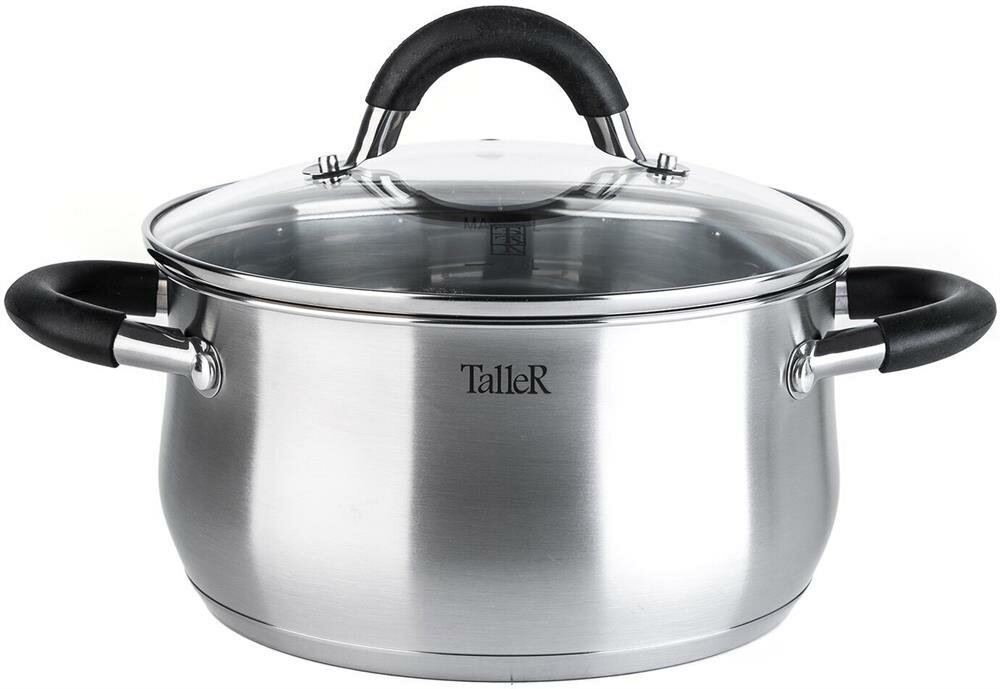 Лучшие цены. Кастрюля из высококачественной нержавеющей стали TalleR TR-11045 «Шелборн» 3,2 л (старый артикул TR-1045) Размеры: 20 х 10,5 см (диаметр х высота без крышки). Кастрюля выполнена из нержавеющей стали - 18/10. Обладает превосходными антикоррозийными свойствами. Капсулированное дно со вставкой из алюминия равномерно распределяет тепло, что помогает избежать пригорания пищи. У кастрюли TR-1045 облегченная конструкция, а значит ей без труда могут пользоваться даже дети. Магазины в вашем городе.