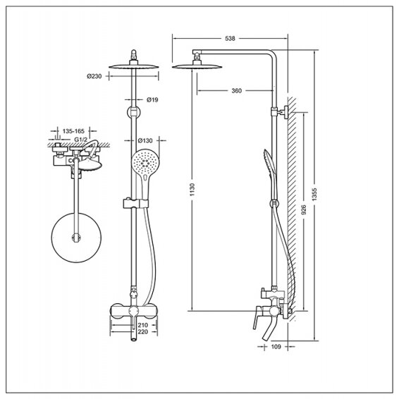 | Размеры верхнего душа | 230 мм |
