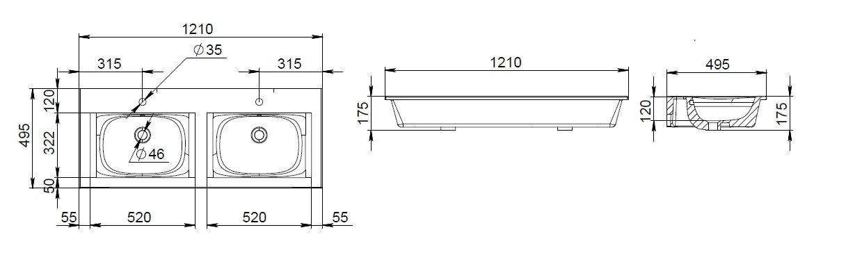 Умывальник Раковина двойная мебельная белая 120x49x17см Am.pm Spirit 2.0 M70AWCD1202WG