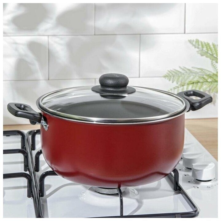Кастрюля алюминиевая Scovo / Сково Expert, объемом 3.5л со стеклянной крышкой, для газовых и электрических плит / посуда для кухни