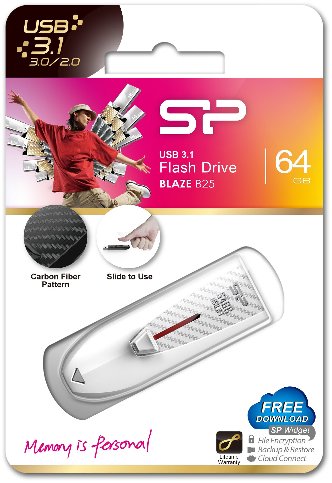 Флешка USB Silicon Power Blaze B25 64ГБ, USB3.0, белый [sp064gbuf3b25v1w]