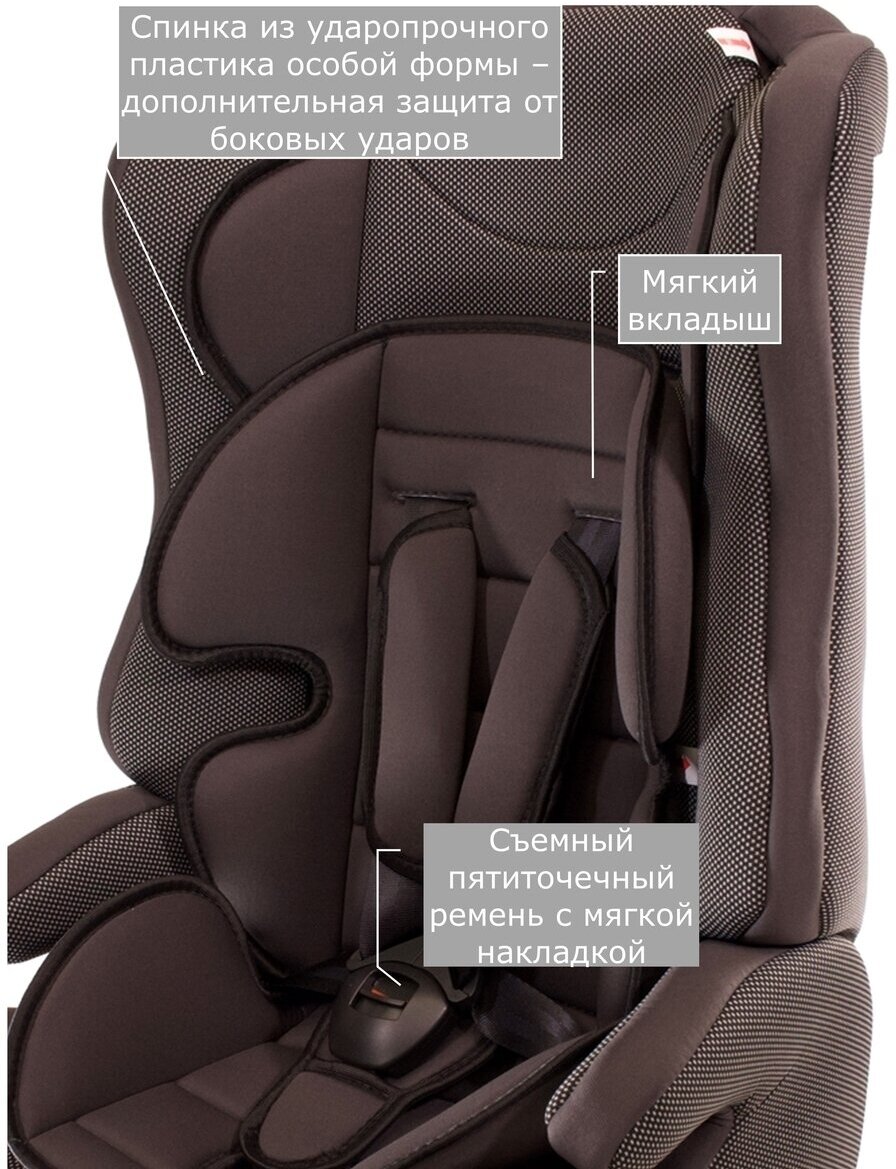 Лучшие цены. Автокресло Carmella 513 RF для детей группы 1/2/3 (вес – от 9 до 36 кг, возраст – от 9 месяцев до 12-ти лет). Состоит из двух частей: съемная спинка и сиденье, может использоваться со спинкой или без в зависимости от веса и возраста ребенка. Удобные в использовании 5-точечные ремни безопасности с центральной регулировкой и карабином, который не сможет открыть ребёнок. Съёмные ремни безопасности, когда ребёнок вырастает из 5-точечной системы и начинают использоваться штатные ремни безопасности автомобиля. Магазины в вашем городе.