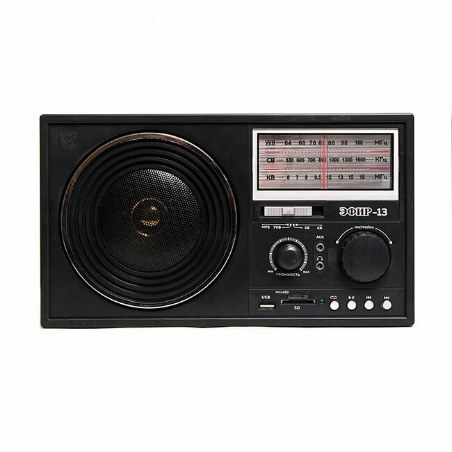 Эфир 13 УКВ 64-108МГц, бат. 4*R20, 220V, USB/SD/microSD/AUX