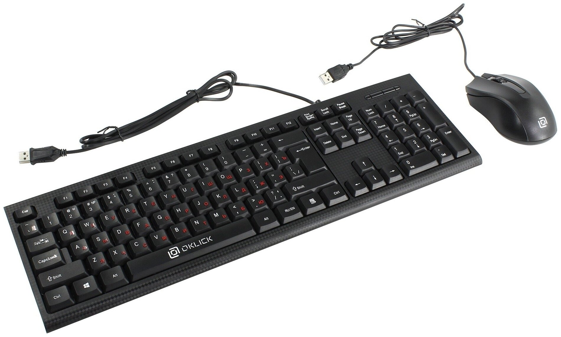 Лучшие цены. Клавиатура + мышь Oklick 620M клав: черный мышь: черный USB Комплект (клавиатура+мышь) Oklick 620M предназначен для оснащения персонального компьютера. Подключение осуществляется к портам USB, кабели имеют длину 1,5 м, корпуса выполнены из черного пластика. Клавиатура Oklick 620M с красными и белыми символами имеет классическую форму и мягкий беззвучный ход кнопок, предусмотрен цифровой блок. Манипулятор оптического типа имеет 2 кнопки и колесо прокрутки, может использоваться и под левую руку. Магазины в вашем городе.