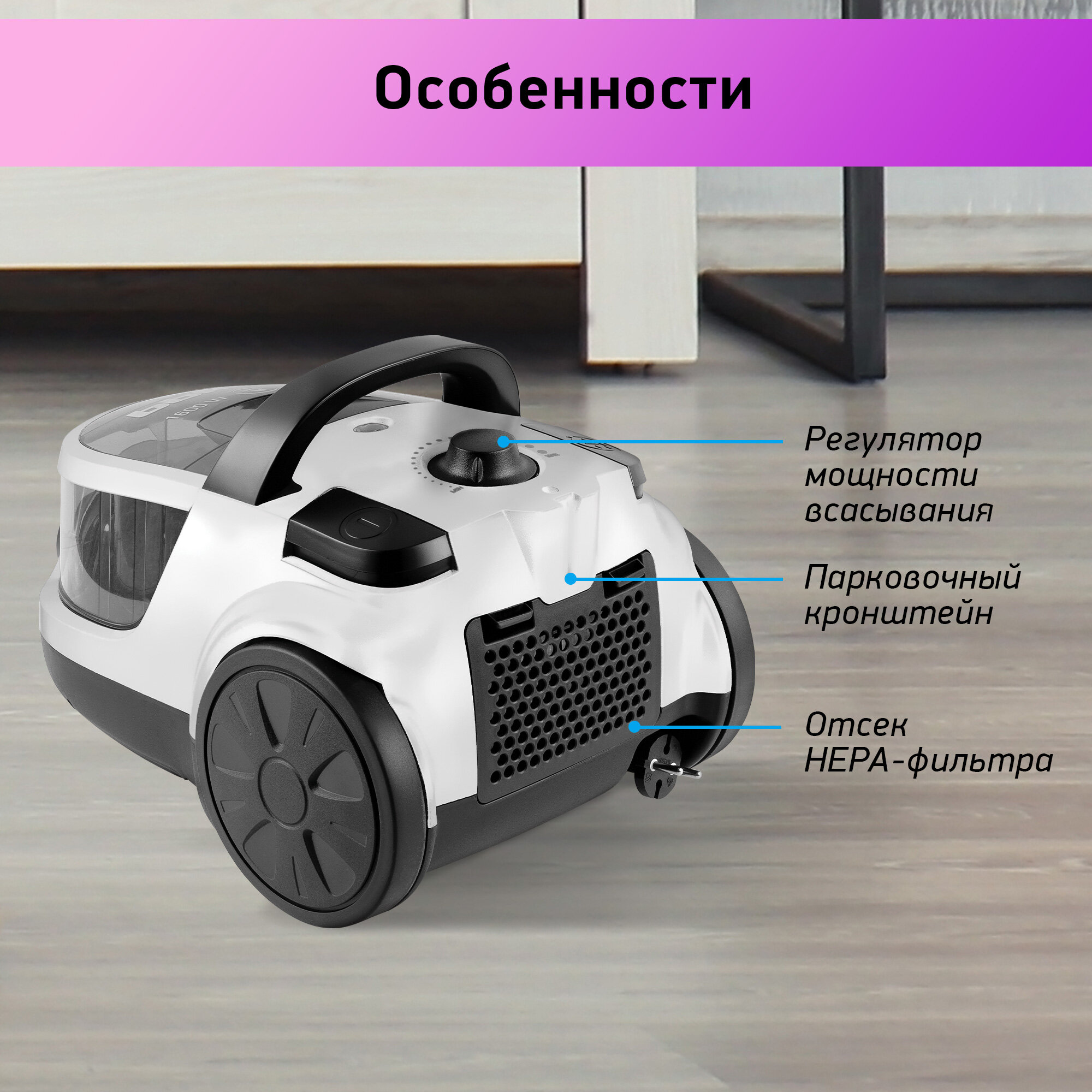 Пылесос циклонный BBK BV1504 вишня/черный, мощность 1600 Вт, нера фильтр, мощность всасывания 300 Вт, объем пылесборника 2 л, 3 насадки в комплекте 6 434 ₽ Подробнее