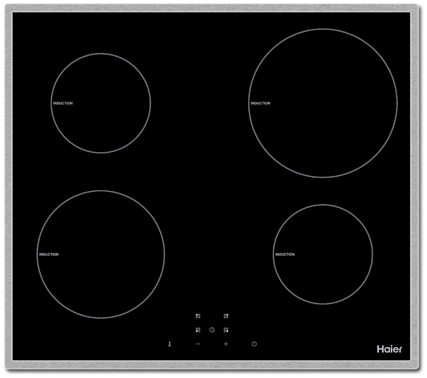 Варочные поверхности Индукционная варочная панель Haier HHX-Y64NFB, цвет панели черный, цвет рамки серебристый