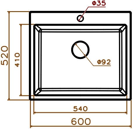 Кухонная мойка GRANULA 6001, кварц, 52см х 60см