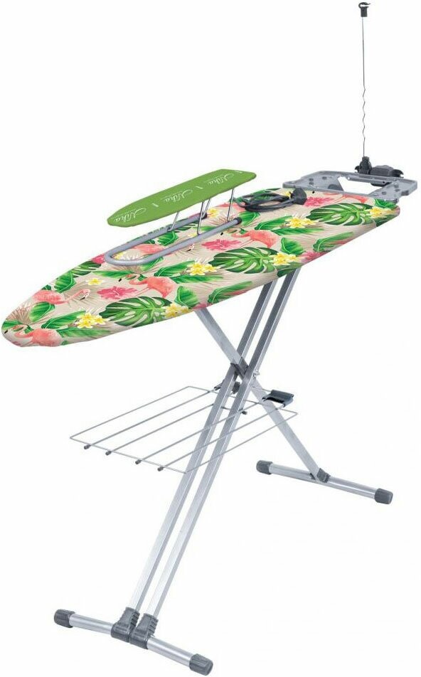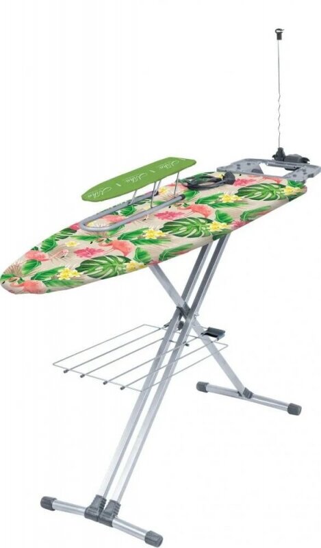 | Функции и возможности | подставка для утюга, регулировка высоты, подрукавник, полка для белья, держатель для вешалок, встроенная розетка, держатель провода |