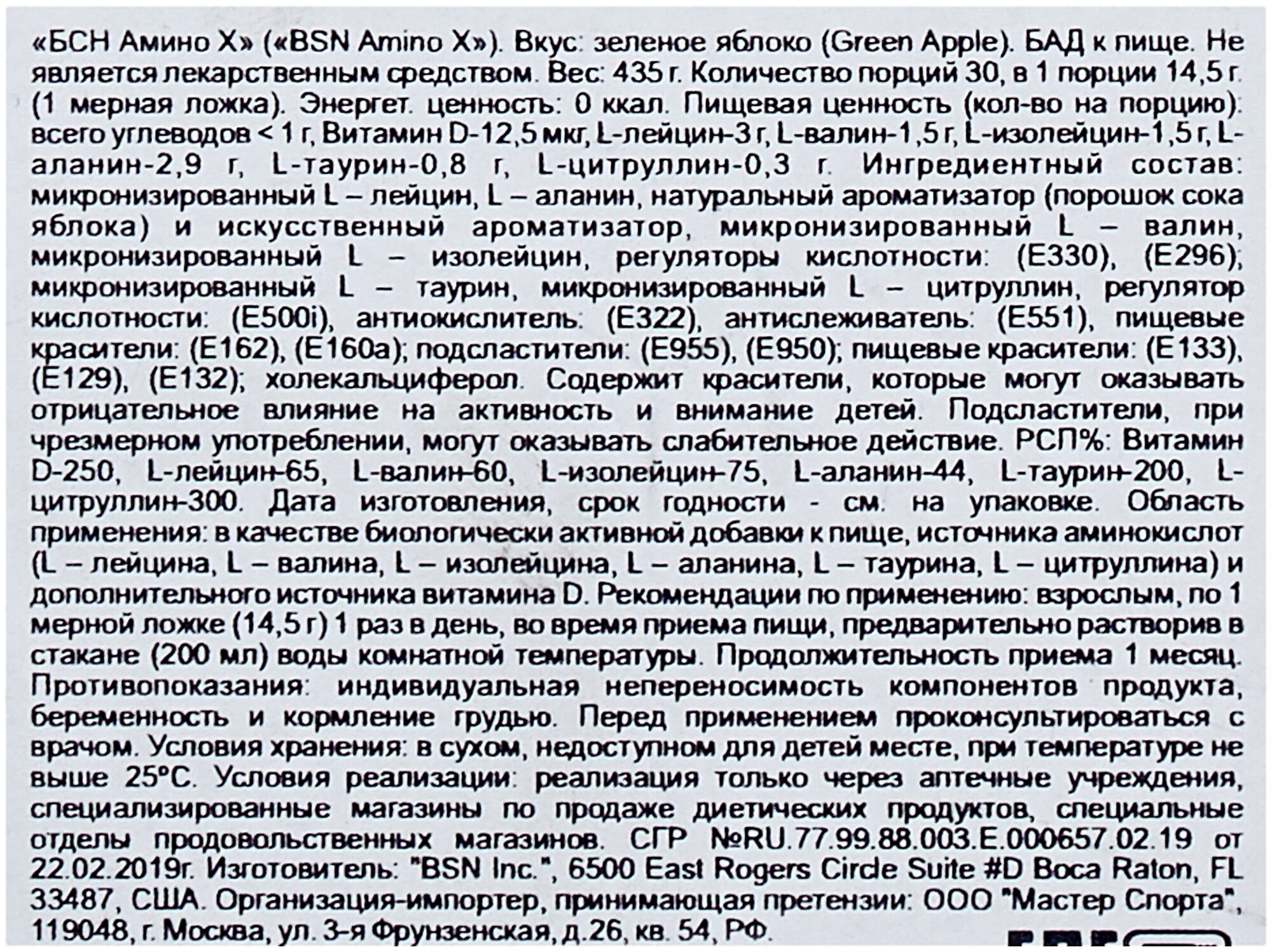 Лучшие цены. Аминокислотный комплекс с витамином D 10 грамм аминокислот на порцию ВСАА в оптимальном соотношении 2:1:1 Без сахара 500 мг витамина D На протяжении многих лет BSN является одним из лидеров в индустрии спортивного питания и ассоциируется с непревзойдённым качеством, абсолютной безопасностью и невероятной эффективностью. Продукция BSN стала неотъемлемой частью питания многих профессиональных бодибилдеров и атлетов. Магазины в вашем городе.