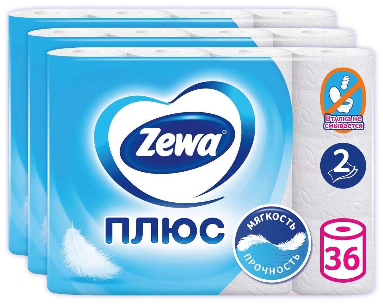 Холодильники Туалетная бумага Zewa Плюс белая двухслойная, 3 уп. 12 рул.