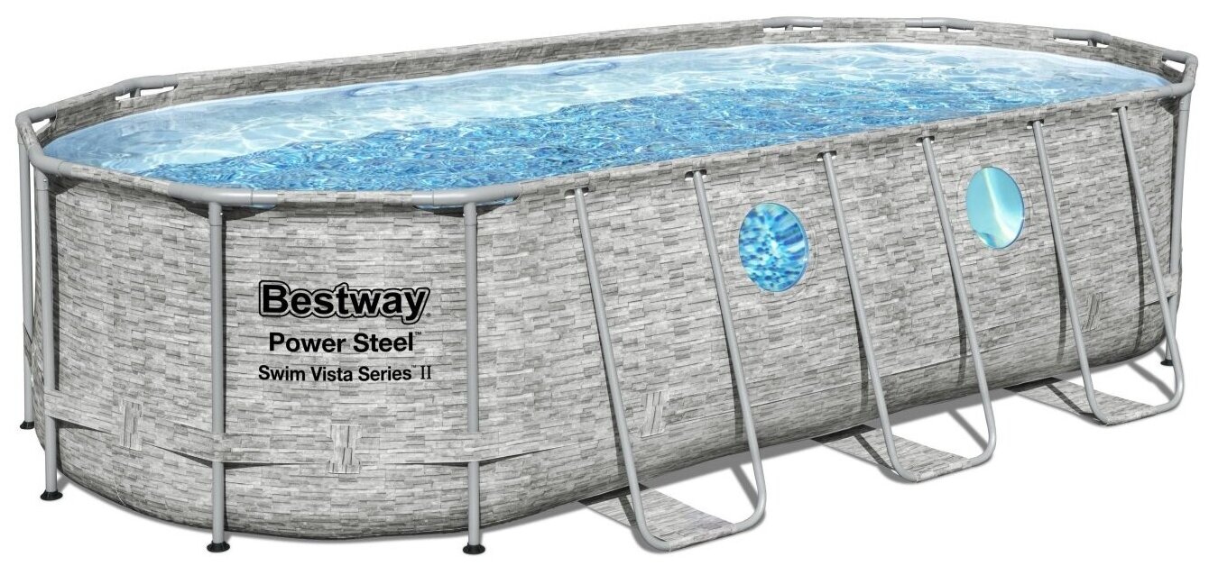 Каркасный овальный бассейн Power Steel 549х274х122 см (+ 4 аксессуара, камень! Окошко!), Bestway