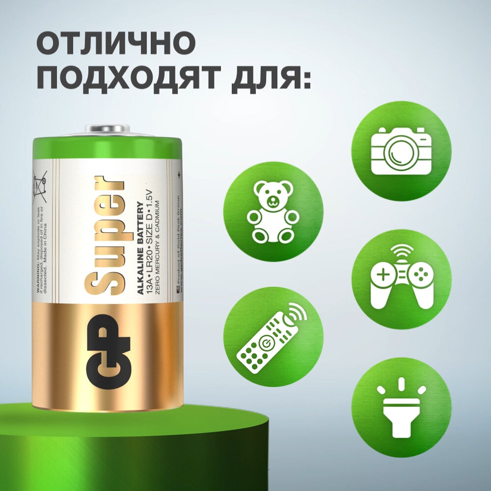 Батарейка GP Super Alkaline D, 2 уп., в упаковке: 2 шт.