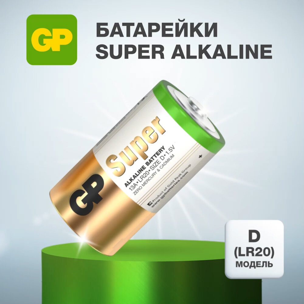 Батарейки GP Super, D (LR20, 13А), алкалиновые, комплект 2 шт., блистер, 13A-2CR2
