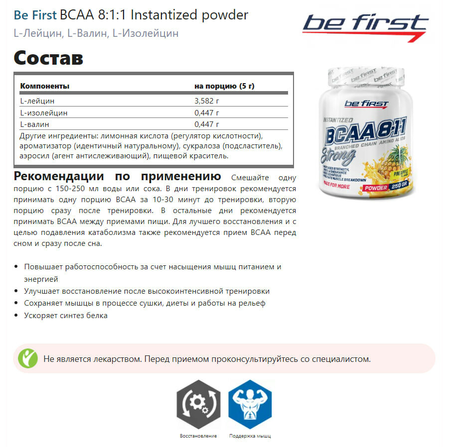 Be First BCAA 8:1:1 INSTANTIZED powder 250 гр (Ананас)