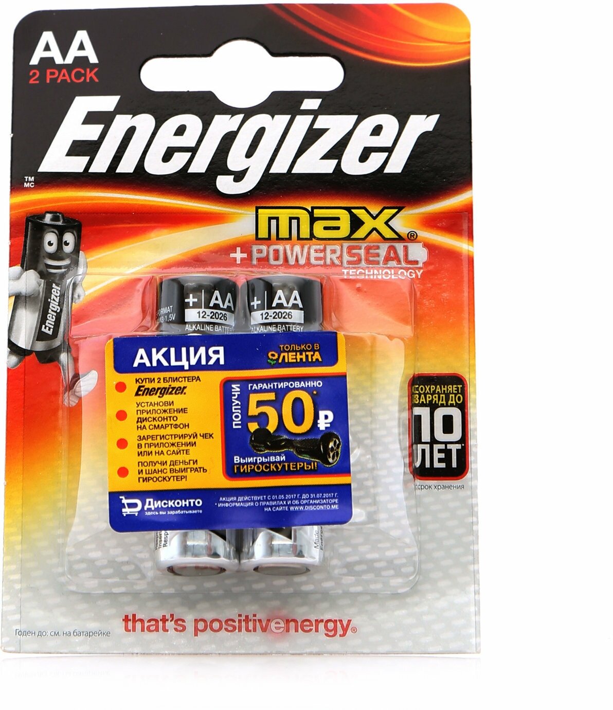 Батарейка Energizer Max AA/LR6, в упаковке: 2 шт.