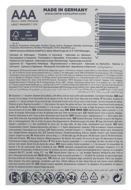 Varta Батарейки LONGLIFE AAA 4103113414 4008496847075