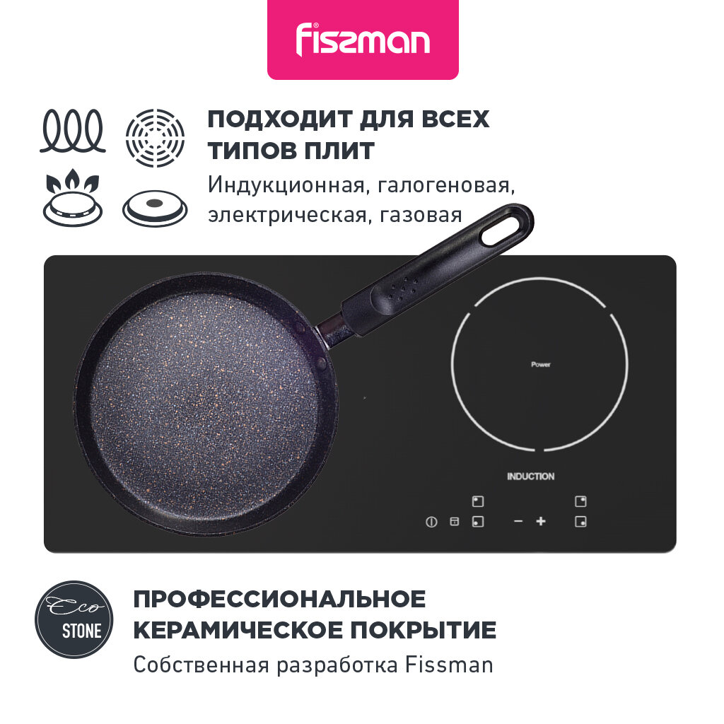 Лучшие цены. Сковорода блинная FISSMAN Promo 18 см - это незаменимый помощник на вашей кухне. Изготовлена из алюминия, что обеспечивает быстрое и равномерное нагревание. Благодаря антипригарному покрытию TouchStone, продукты не прилипают к поверхности, что облегчает процесс приготовления и экономит ваше время. Особенностью сковороды является ее дизайн. Поверхность покрыта золотыми и серебряными вкраплениями, что придает ей эстетический вид и делает ее украшением любой кухни. Магазины в вашем городе.