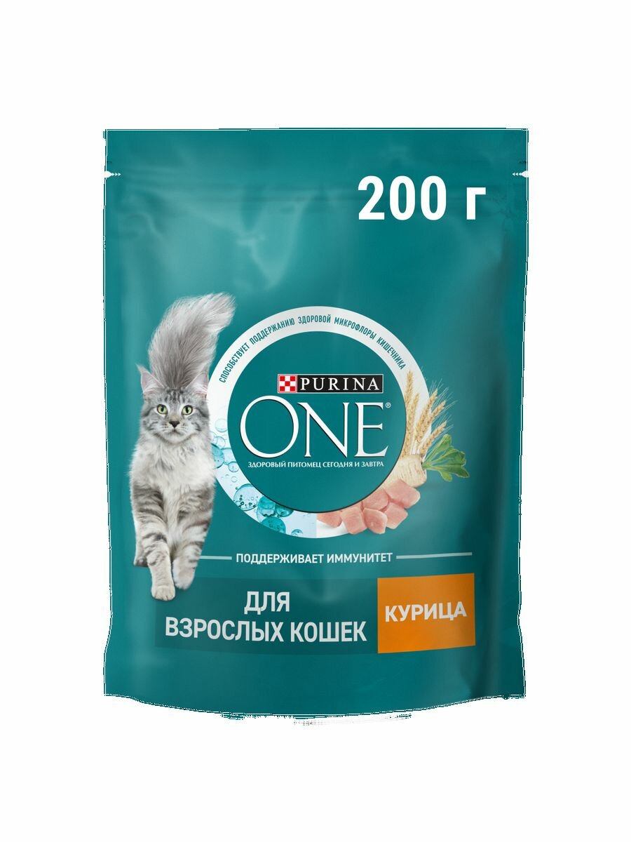 Сухой корм Purina ONE для взрослых кошек, с высоким содержанием курицы и цельными злаками, 200 г