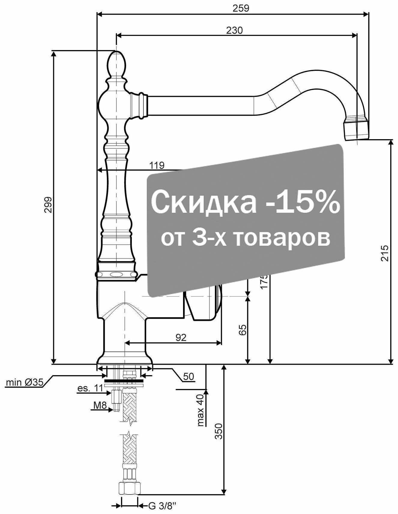 | Высота смесителя | 181 мм |