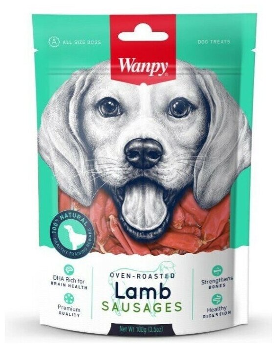 Лакомство Wanpy Dog Сосиски из мяса ягнёнка для собак всех пород 100 г