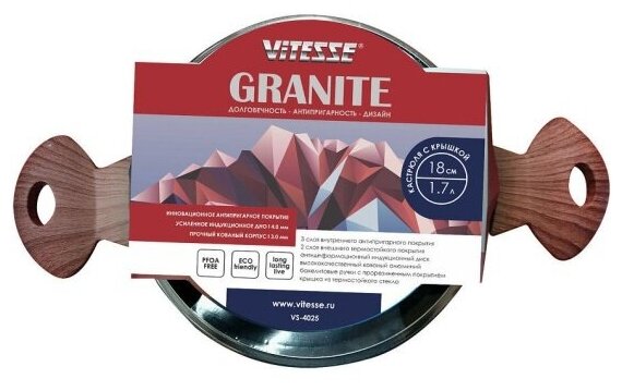 Кастрюля Vitesse Granite VS-4025, 1.7 л, диаметр 18 см
