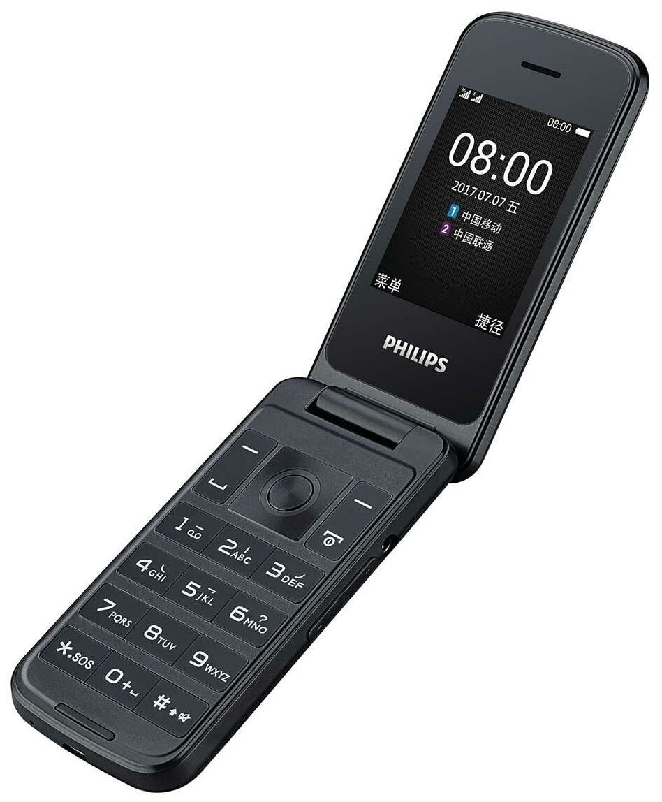 Мобильный телефон Philips E255 Xenium 32Mb черный раскладной 2Sim 2.4" 240x320 0.3Mpix GSM900/1800 GSM1900 MP3 FM microSD max32Gb