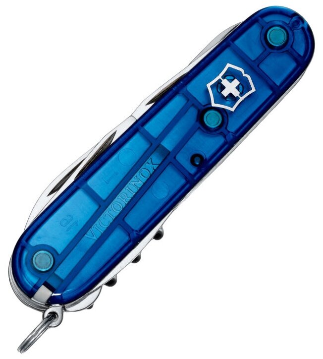 Лучшие цены. Швейцарский армейский нож HUNTSMAN имеет 15 функций: 1. Большое лезвие 2. Малое лезвие 3. Штопор 4. Консервный нож с: 5. – Малой отвёрткой 6. Открывалка для бутылок с: 7. – Отвёрткой 8. – Инструментом для снятия изоляции 9. Шило, кернер 10. Кольцо для ключей 11. Пинцет 12. Зубочистка 13. Ножницы 14. Многофункциональный крючок 15. Пила по дереву Цвет рукояти: полупрозрачный синий Рекомендуемые чехлы: 4.0480.1, 4.0480.3, 4.0520.1, 4.0520.3, 4.0520.31, 4.0520.32, 4.0543.3, 4.0533, 4.0738 Рекомендуемые. Магазины в вашем городе.