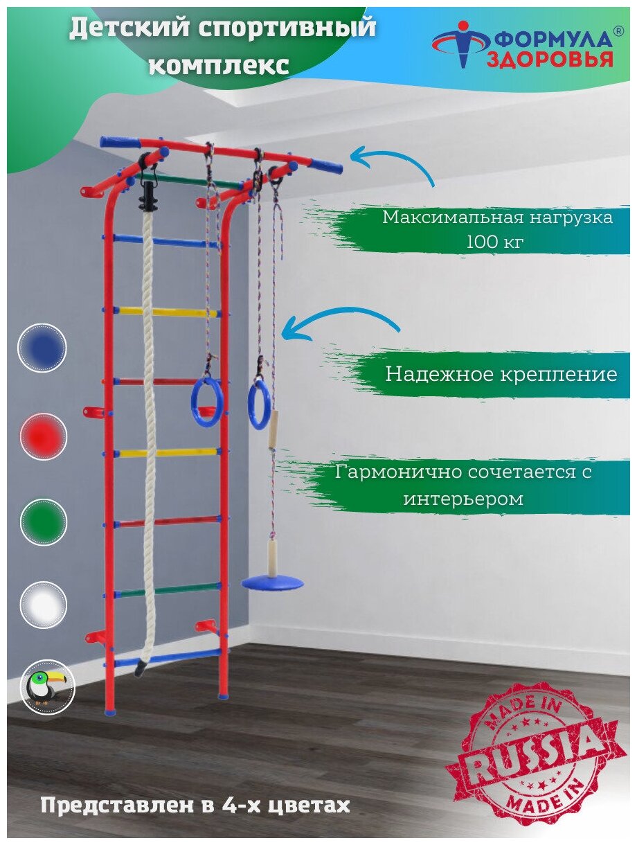 Спортивный комплекс на базе шведской стенки Формула здоровья Start mini (Красный радуга) - пристенный ДСК для дома