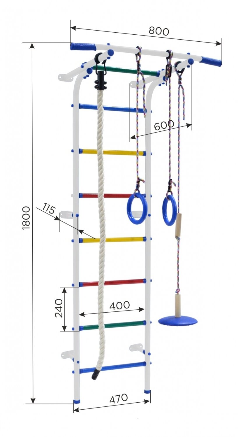 Спортивный комплекс на базе шведской стенки Формула здоровья Start mini (Белый радуга) - пристенный ДСК для дома