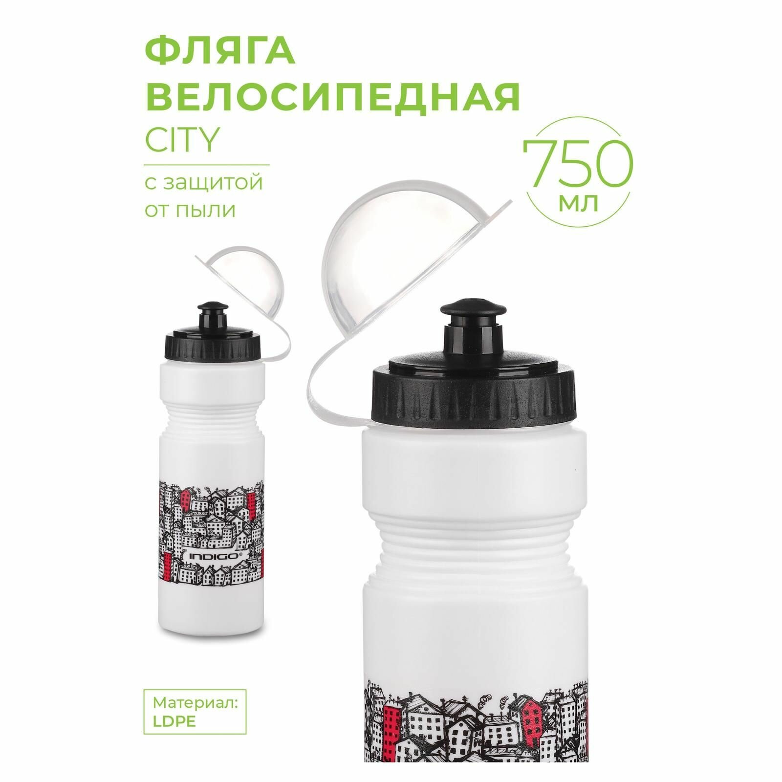 Фляга велосипедная, Бутылка для воды велосипедная INDIGO CITY с защитой от пыли 750 мл
